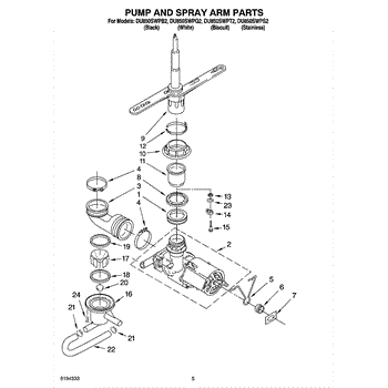 Parts for Whirlpool DU850SWPT2: 04 - Pump And Spray Arm Parts