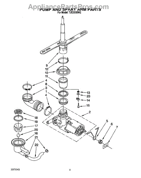 Parts for Whirlpool TUD3000W2: 05 - Pump And Spray Arm Parts