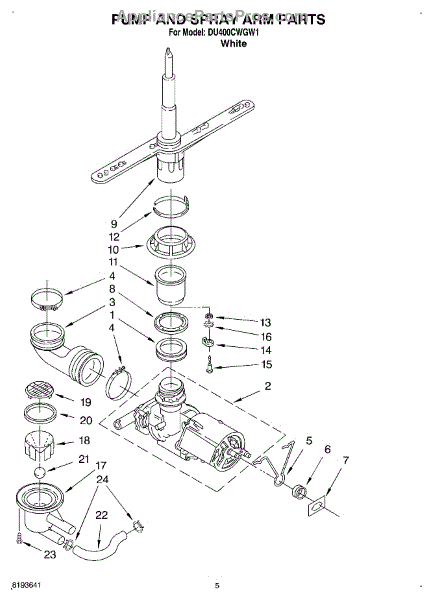 Parts for Whirlpool DU400CWGW1: 04 - Pump And Sprayarm Parts