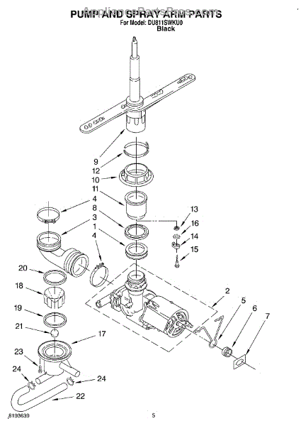 Parts for Whirlpool DU811SWKU0: 04 - Pump And Sprayarm Parts
