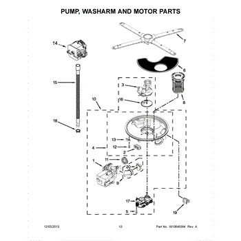 The Pump & Motor is an OEM replacement part for Whirlpool dishwashers. As the main component for water circulation, it contains both the water pump and motor required to power it. Causes of a faulty pump & motor assembly can include bearing or seal failure from prolonged use, dried pumps from excess mineral build-up, or stuck/jammed impellers no longer spinning freely. Symptoms of a bad pump & motor include:
