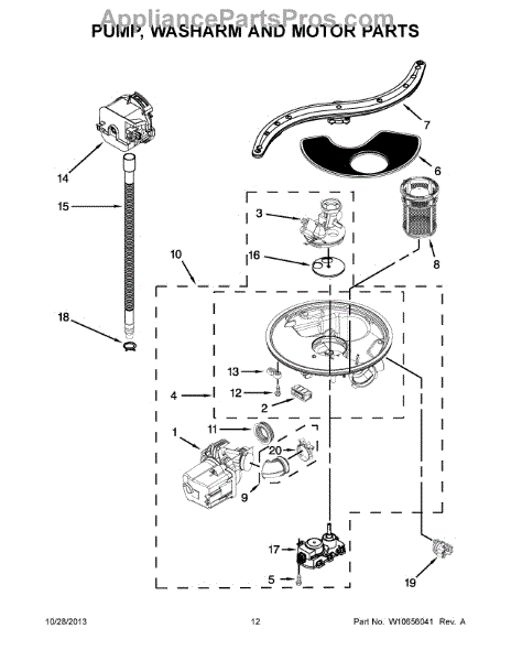 The Pump & Motor is an OEM replacement part for Whirlpool dishwashers. As the main component for water circulation, it contains both the water pump and motor required to power it. Causes of a faulty pump & motor assembly can include bearing or seal failure from prolonged use, dried pumps from excess mineral build-up, or stuck/jammed impellers no longer spinning freely. Symptoms of a bad pump & motor include: