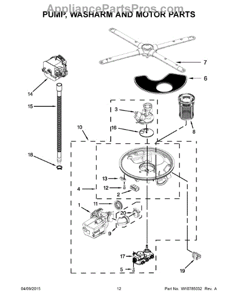The Pump & Motor is an OEM replacement part for Whirlpool dishwashers. As the main component for water circulation, it contains both the water pump and motor required to power it. Causes of a faulty pump & motor assembly can include bearing or seal failure from prolonged use, dried pumps from excess mineral build-up, or stuck/jammed impellers no longer spinning freely. Symptoms of a bad pump & motor include: