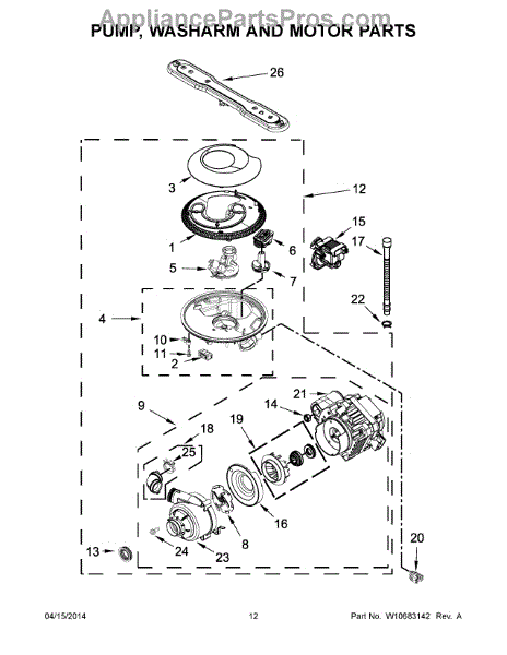 This dishwasher circulation pump and motor assembly drives wash water through the spray arms at the proper pressure. Replacing a worn or noisy unit restores strong water movement and consistent cleaning during the wash and rinse cycles. What it does: