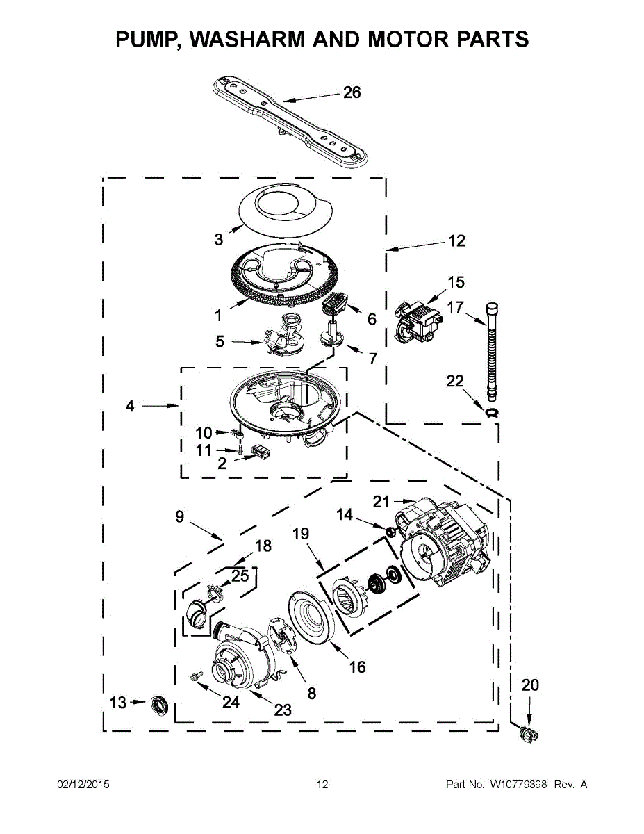 This dishwasher circulation pump and motor assembly drives wash water through the spray arms at the proper pressure. Replacing a worn or noisy unit restores strong water movement and consistent cleaning during the wash and rinse cycles. What it does: