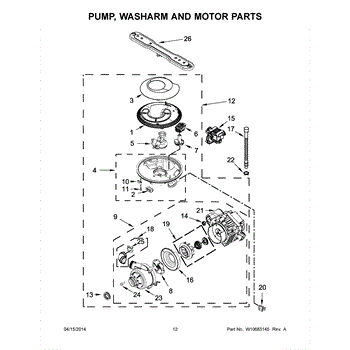 This dishwasher circulation pump and motor assembly drives wash water through the spray arms at the proper pressure. Replacing a worn or noisy unit restores strong water movement and consistent cleaning during the wash and rinse cycles. What it does: