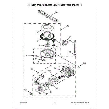This dishwasher circulation pump and motor assembly drives wash water through the spray arms at the proper pressure. Replacing a worn or noisy unit restores strong water movement and consistent cleaning during the wash and rinse cycles. What it does: