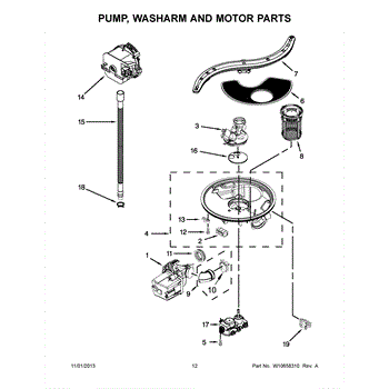 The Dishwasher Motor to Sump Hose is an OEM replacement part for Whirlpool dishwashers. It is a flexible tube that connects the dishwasher's drain pump motor to the sump, allowing for the efficient drainage of water from the dishwasher tub.