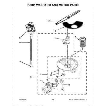 The Pump & Motor Assembly is an OEM part for Whirlpool dishwashers. Located inside the base of the tub, this assembly consists of both the circulating pump and motor integrated as one unit. It is responsible for circulating water and spray throughout wash and rinse cycles.