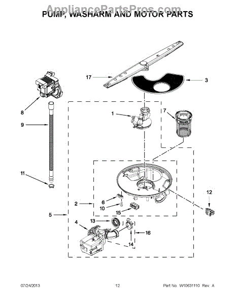 Parts for Whirlpool WDF310PAAW4: 06 - Pump, Washarm And Motor Parts