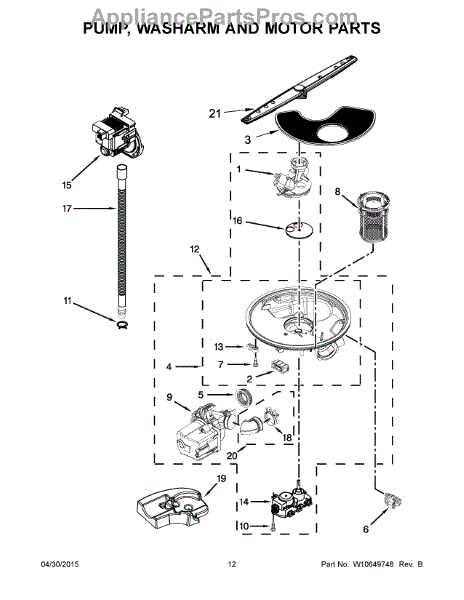 The Pump and Motor Assembly is an OEM part for Whirlpool dishwashers. This assembly is crucial for circulating water throughout the dishwasher during the wash and rinse cycles. It ensures that water is distributed effectively to clean dishes and then drained out of the appliance after the cycle is completed.