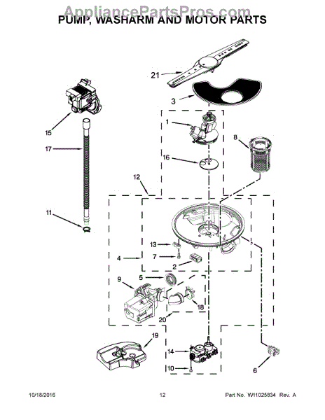 This replacement OEM part is a sump and motor assembly for dishwashers. The sump and motor assembly distributes water to the spray arm of the dishwasher. Luckily, replacing this part is a simple process. To begin, turn off the power supply and shut off the water supply valve. Remove the screws that secure the lower access panel. Disconnect the water supply line from the inlet valve. Then proceed to remove the mounting screws from the junction box cover. Take note of the wires' orientation. Remove the screws that hold the bracket. Disconnect the drain hose from the sink or garbage disposal. Open the dishwasher door and remove the mounting screws. Pull the dishwasher away from the cabinet and unsnap the covers from the hinge ropes. Disconnect the ropes. Remove the screws securing the upper door panel. Carefully tilt the dishwasher back and detach the fill hose from its retaining clip disconnecting the hose from the sump. Uninstall the sump and motor assembly and align the pump with the seal and sump. This genuine replacement part is sold individually and is compatible with Whirlpool, Maytag, KitchenAid, Jenn-Air, Amana, Magic Chef, Admiral, Norge, Roper, and Sears/Kenmore brand dishwashers.