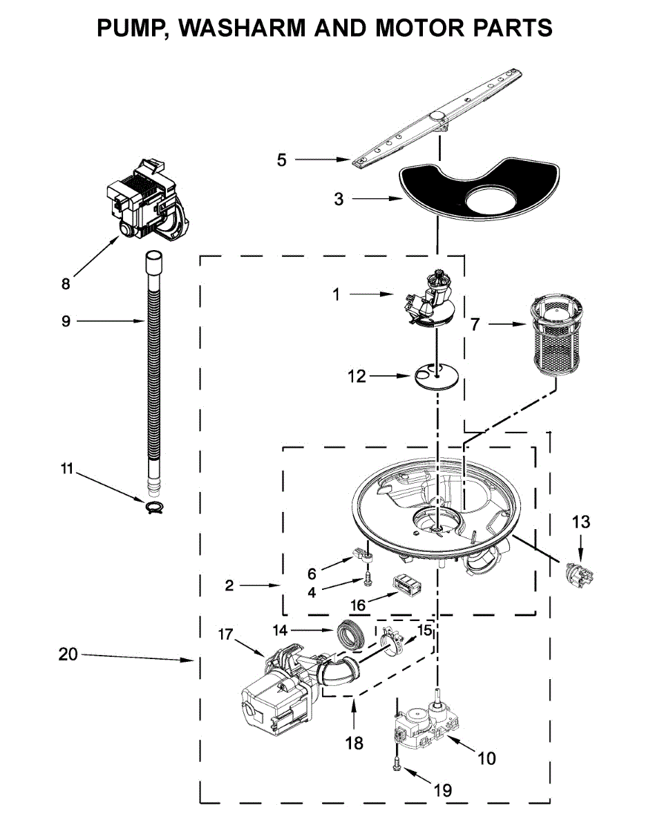 This pump and motor assembly circulates and removes water from the dishwasher tub so dishes drain properly. It replaces a worn or failed pump to restore normal draining and help prevent standing water after cycles. What it does: