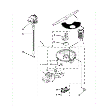 The Dishwasher Motor to Sump Hose is an OEM replacement part for Whirlpool dishwashers. It is a flexible tube that connects the dishwasher's drain pump motor to the sump, allowing for the efficient drainage of water from the dishwasher tub.