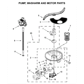 The Sump and motor assembly is an OEM component for Whirlpool dishwashers. Located at the bottom of the dishwasher tub, this assembly contains both the pump and motor that circulate water during the wash and rinse cycles. Causes of a bad sump and motor assembly include mineral or grit buildup inside the pump/motor housing that causes reduced water flow, worn-out seals or impellers in the pump, or failure of the motor components. Symptoms of a bad sump and motor assembly include: