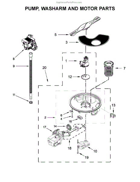 The Pump Motor is an OEM part for Whirlpool dishwashers. It is responsible for circulating water through the dishwasher during the wash and rinse cycles. This motor ensures that water is effectively sprayed over the dishes, providing thorough cleaning and optimal performance.