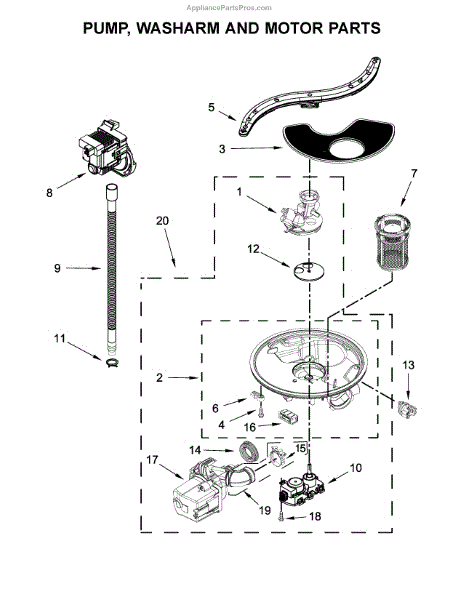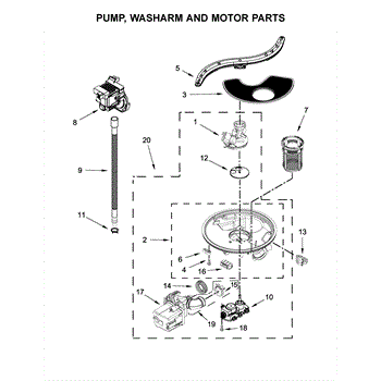 The Sump and motor assembly is an OEM component for Whirlpool dishwashers. Located at the bottom of the dishwasher tub, this assembly contains both the pump and motor that circulate water during the wash and rinse cycles. Causes of a bad sump and motor assembly include mineral or grit buildup inside the pump/motor housing that causes reduced water flow, worn-out seals or impellers in the pump, or failure of the motor components. Symptoms of a bad sump and motor assembly include:
