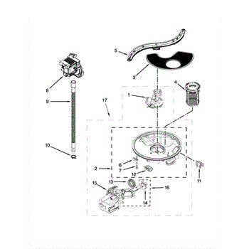 This dishwasher circulation pump and motor drives wash water through the spray arms for effective cleaning. Replacing a failed wash motor restores strong spray pressure and consistent cleaning performance throughout the cycle.