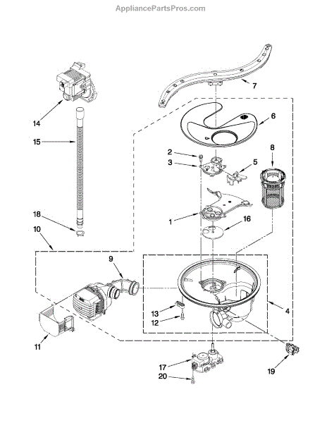 This is a durable pump and motor assembly for dishwashers. The purpose of the pump and motor is to pump water that goes through the spray arms when the dishwasher moves through a cycle. If the pump and motor assembly isn't working correctly, it could lead to dishes that are dirty after a cycle is complete. Other signs of a bad pump and motor include pooling water after a cycle and whining noises.If the pump and motor assembly need to be replaced, make sure the dishwasher is unplugged. Use a pair of work gloves to protect the hands throughout the process. Close the water supply valve and disconnect the drain line. Replacing the pump and motor assembly may require tilting the dishwasher on its side to disassemble the components that are in the way of the replacement. Once the pump and motor have been removed, install the new parts and reassemble the dishwasher before use.Created for use with dishwashers by KitchenAid, Kenmore, and Whirlpool, this pump and motor assembly is a genuine OEM replacement part. It is sold as a single part. This component is directly sourced from the manufacturer.