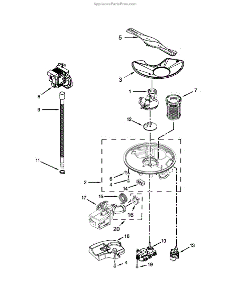 Causes of a bad pump and motor assembly can include wear and tear from regular use, blockages from food particles or debris, electrical issues, or damage to the motor or impeller. Such issues can severely affect the performance of the dishwasher.