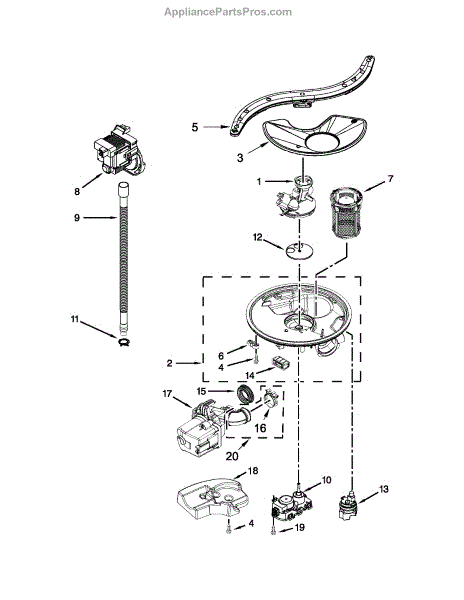 Causes of a bad pump and motor assembly can include wear and tear from regular use, blockages from food particles or debris, electrical issues, or damage to the motor or impeller. Such issues can severely affect the performance of the dishwasher.