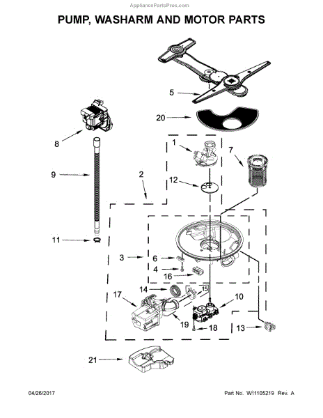 The Pump & Motor unit is an OEM replacement part for Whirlpool dishwasher models. This unit works together to recirculate water, chemically treated, throughout the wash chamber during cycles.