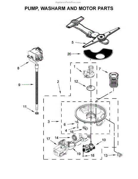 This part is a pump and motor assembly that is made for use on a dishwasher. This component is what pumps water through the spray arms during the dishwashing cycle. A new pump and motor assembly will be needed if there is an error code on the unit that advises the pump motor needs to be replaced. If water is not being pumped into the spray arms, this is also an indicator that the pump and motor assembly have gone bad. However, it is a good idea to consult a professional to determine the appropriate diagnosis. It is a good idea to shut off the house circuit breaker for the dishwasher prior to replacing this part. Wear gloves to protect the hands.This is a genuine OEM part that is sourced straight from the manufacturer. It is sold individually. This pump and motor assembly are compatible with dishwashers that are manufactured by Whirlpool, KitchenAid, Kenmore Elite, and Kenmore Pro.