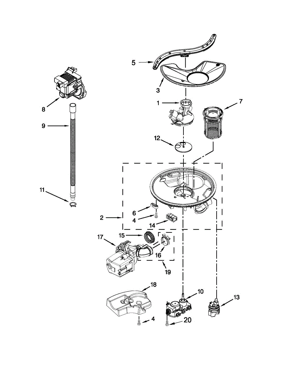 Traps large food particles and debris to prevent pump clogs in your dishwasher. Replace when buildup causes poor cleaning or drainage issues.