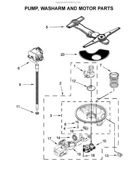 Fix loud droning noise, poor cleaning, or groaning sounds. This dishwasher circulation pump and motor ensures water flows to spray arms. DIY repair in 45 min.