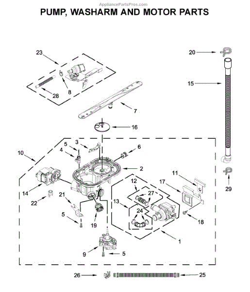 Parts for Kitchenaid KDFE204KWH0: Pump, Washarm And Motor Parts