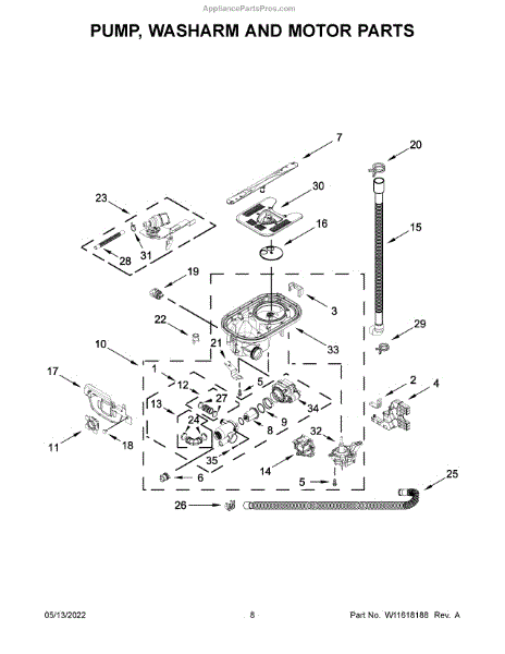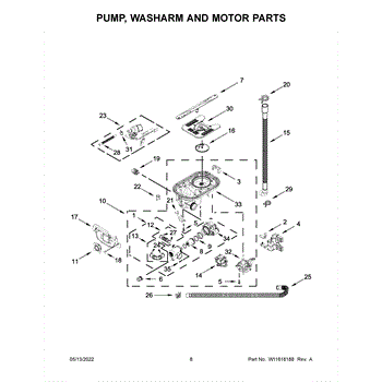 Parts for Kitchenaid KDPM604KPS1: Pump, Washarm And Motor Parts