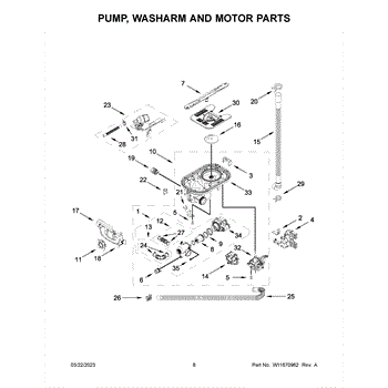 Parts for Kitchenaid KDPM804KBS1: Pump, Washarm And Motor Parts