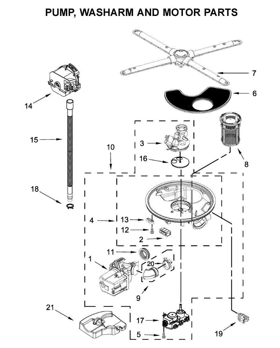 The Sump and motor assembly is an OEM component for Whirlpool dishwashers. Located at the bottom of the dishwasher tub, this assembly contains both the pump and motor that circulate water during the wash and rinse cycles. Causes of a bad sump and motor assembly include mineral or grit buildup inside the pump/motor housing that causes reduced water flow, worn-out seals or impellers in the pump, or failure of the motor components. Symptoms of a bad sump and motor assembly include:
