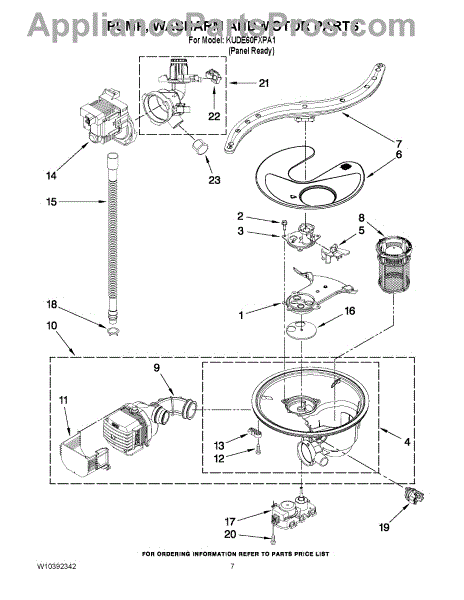 Parts for Kitchenaid KUDE60FXPA1: 06 - Pump, Washarm And Motor Parts