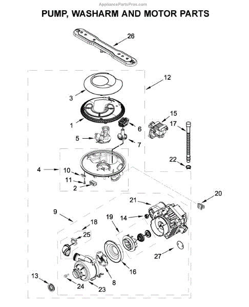 Parts for Maytag MDB4949SHZ1: Pump, Washarm And Motor Parts