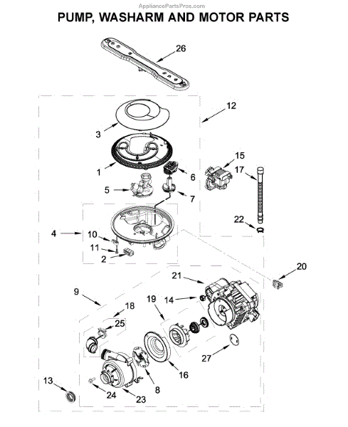 Parts for Maytag MDB8989SHZ0: Pump, Washarm And Motor Parts