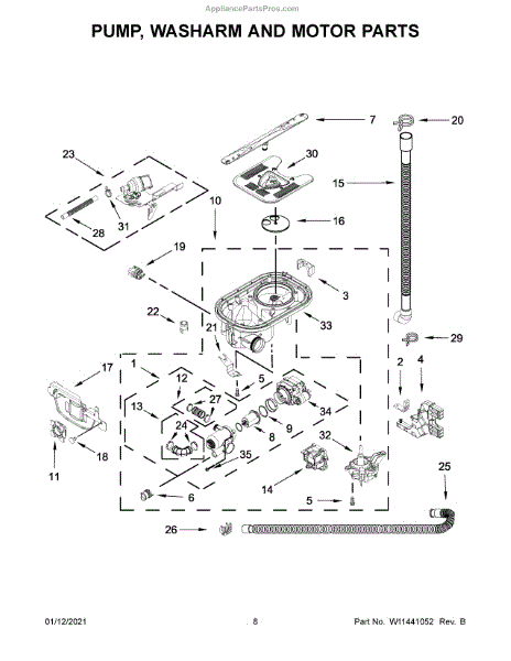 The Sump is an OEM part for Whirlpool dishwashers. It houses the dishwasher's motor and pump assembly, responsible for circulating water and ensuring effective cleaning of your dishes.