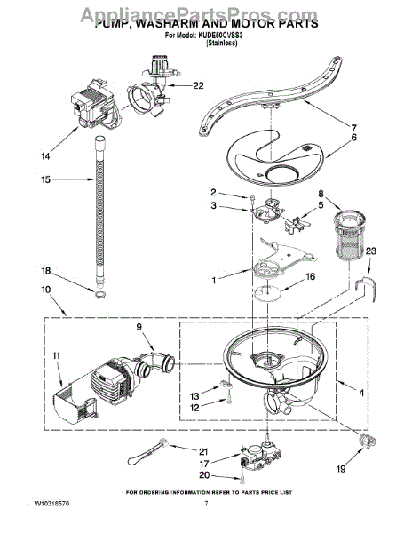 Parts for Kitchenaid KUDE50CVSS3: 06 - Pump, Washarm And Motor Parts