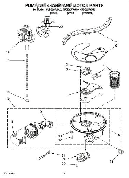 This is a durable pump and motor assembly for dishwashers. The purpose of the pump and motor is to pump water that goes through the spray arms when the dishwasher moves through a cycle. If the pump and motor assembly isn't working correctly, it could lead to dishes that are dirty after a cycle is complete. Other signs of a bad pump and motor include pooling water after a cycle and whining noises.If the pump and motor assembly need to be replaced, make sure the dishwasher is unplugged. Use a pair of work gloves to protect the hands throughout the process. Close the water supply valve and disconnect the drain line. Replacing the pump and motor assembly may require tilting the dishwasher on its side to disassemble the components that are in the way of the replacement. Once the pump and motor have been removed, install the new parts and reassemble the dishwasher before use.Created for use with dishwashers by KitchenAid, Kenmore, and Whirlpool, this pump and motor assembly is a genuine OEM replacement part. It is sold as a single part. This component is directly sourced from the manufacturer.
