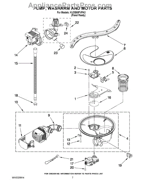 This is a durable pump and motor assembly for dishwashers. The purpose of the pump and motor is to pump water that goes through the spray arms when the dishwasher moves through a cycle. If the pump and motor assembly isn't working correctly, it could lead to dishes that are dirty after a cycle is complete. Other signs of a bad pump and motor include pooling water after a cycle and whining noises.If the pump and motor assembly need to be replaced, make sure the dishwasher is unplugged. Use a pair of work gloves to protect the hands throughout the process. Close the water supply valve and disconnect the drain line. Replacing the pump and motor assembly may require tilting the dishwasher on its side to disassemble the components that are in the way of the replacement. Once the pump and motor have been removed, install the new parts and reassemble the dishwasher before use.Created for use with dishwashers by KitchenAid, Kenmore, and Whirlpool, this pump and motor assembly is a genuine OEM replacement part. It is sold as a single part. This component is directly sourced from the manufacturer.