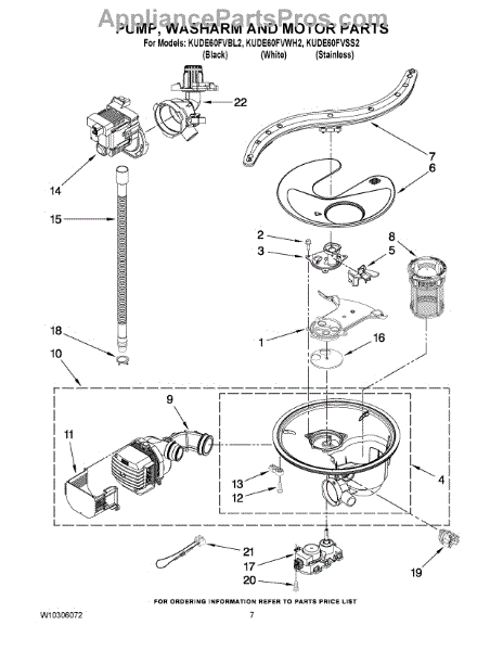 This is a durable pump and motor assembly for dishwashers. The purpose of the pump and motor is to pump water that goes through the spray arms when the dishwasher moves through a cycle. If the pump and motor assembly isn't working correctly, it could lead to dishes that are dirty after a cycle is complete. Other signs of a bad pump and motor include pooling water after a cycle and whining noises.If the pump and motor assembly need to be replaced, make sure the dishwasher is unplugged. Use a pair of work gloves to protect the hands throughout the process. Close the water supply valve and disconnect the drain line. Replacing the pump and motor assembly may require tilting the dishwasher on its side to disassemble the components that are in the way of the replacement. Once the pump and motor have been removed, install the new parts and reassemble the dishwasher before use.Created for use with dishwashers by KitchenAid, Kenmore, and Whirlpool, this pump and motor assembly is a genuine OEM replacement part. It is sold as a single part. This component is directly sourced from the manufacturer.