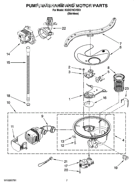 Parts for Kitchenaid KUDE70CVSS1: 06 - Pump, Washarm And Motor Parts