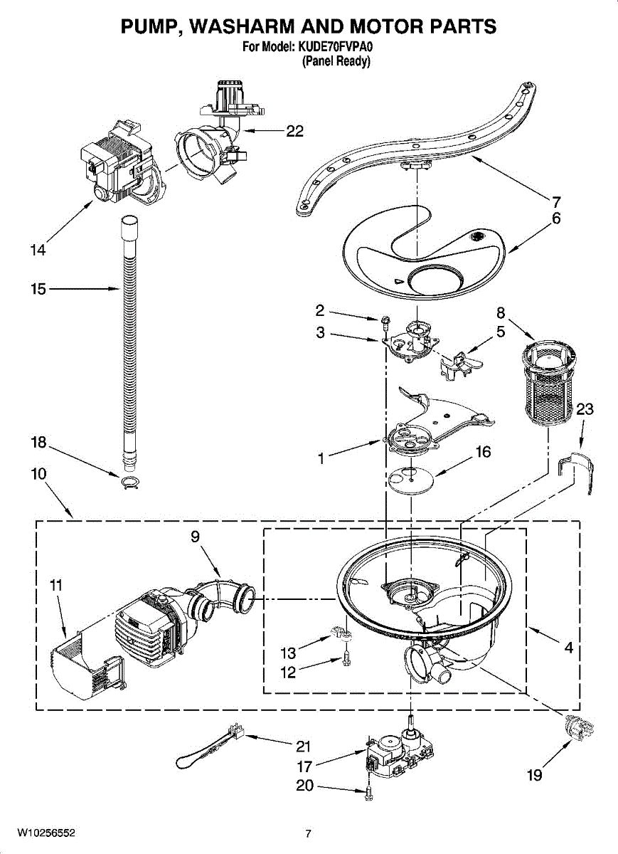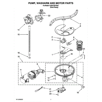 This is a durable pump and motor assembly for dishwashers. The purpose of the pump and motor is to pump water that goes through the spray arms when the dishwasher moves through a cycle. If the pump and motor assembly isn't working correctly, it could lead to dishes that are dirty after a cycle is complete. Other signs of a bad pump and motor include pooling water after a cycle and whining noises.If the pump and motor assembly need to be replaced, make sure the dishwasher is unplugged. Use a pair of work gloves to protect the hands throughout the process. Close the water supply valve and disconnect the drain line. Replacing the pump and motor assembly may require tilting the dishwasher on its side to disassemble the components that are in the way of the replacement. Once the pump and motor have been removed, install the new parts and reassemble the dishwasher before use.Created for use with dishwashers by KitchenAid, Kenmore, and Whirlpool, this pump and motor assembly is a genuine OEM replacement part. It is sold as a single part. This component is directly sourced from the manufacturer.