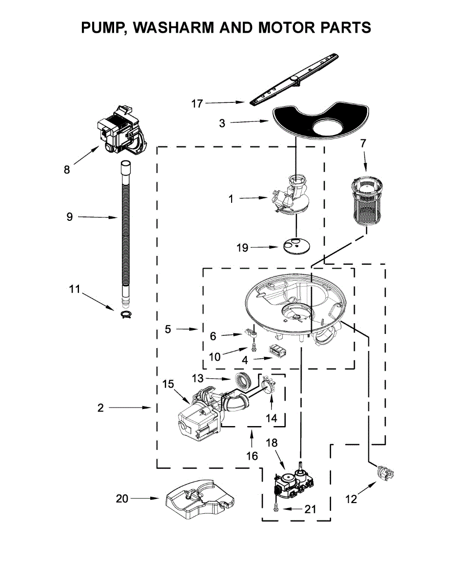 The Sump and motor assembly is an OEM component for Whirlpool dishwashers. Located at the bottom of the dishwasher tub, this assembly contains both the pump and motor that circulate water during the wash and rinse cycles. Causes of a bad sump and motor assembly include mineral or grit buildup inside the pump/motor housing that causes reduced water flow, worn-out seals or impellers in the pump, or failure of the motor components. Symptoms of a bad sump and motor assembly include: