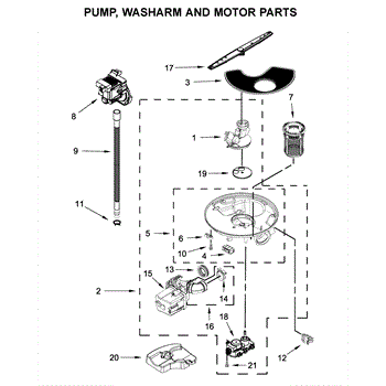 The Sump and motor assembly is an OEM component for Whirlpool dishwashers. Located at the bottom of the dishwasher tub, this assembly contains both the pump and motor that circulate water during the wash and rinse cycles. Causes of a bad sump and motor assembly include mineral or grit buildup inside the pump/motor housing that causes reduced water flow, worn-out seals or impellers in the pump, or failure of the motor components. Symptoms of a bad sump and motor assembly include: