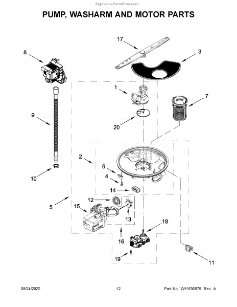 The Diverter Cover is an OEM replacement part for Whirlpool dishwashers. It is a protective plastic shield that covers the diverter valve, which controls the path of water flow during different wash cycles. The cover helps protect internal components from debris while allowing the valve underneath to operate smoothly. Causes of a bad diverter cover can include cracks or breaks due to impact, loosening of mounting screws over time, or discoloration and wear of the plastic material. Symptoms of a bad diverter cover include: