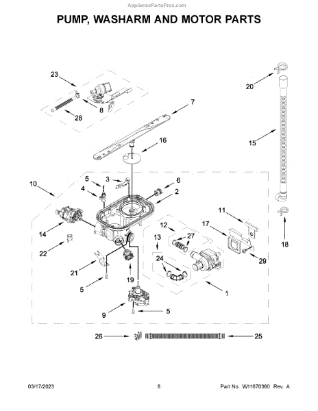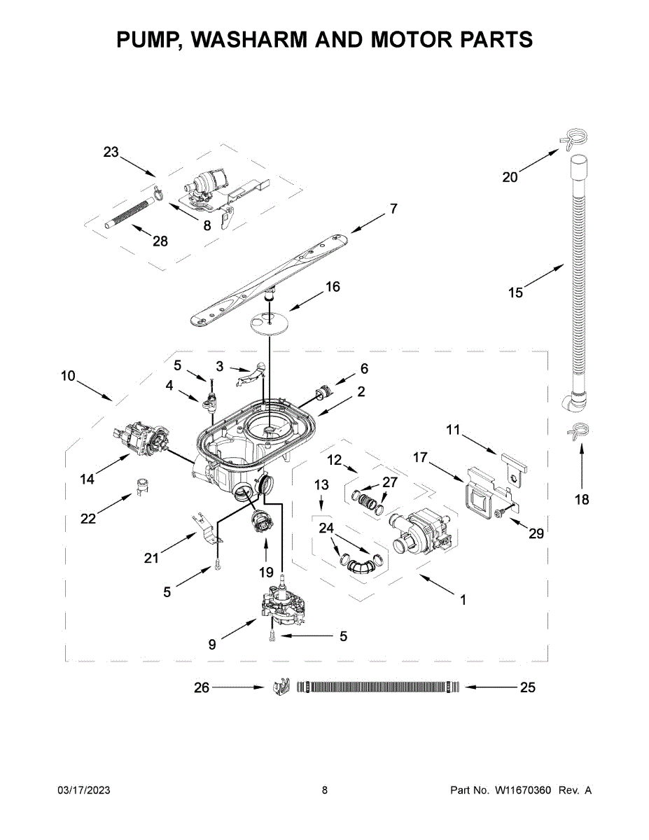 Parts for Whirlpool WDT970SAKV1: Pump, Washarm And Motor Parts
