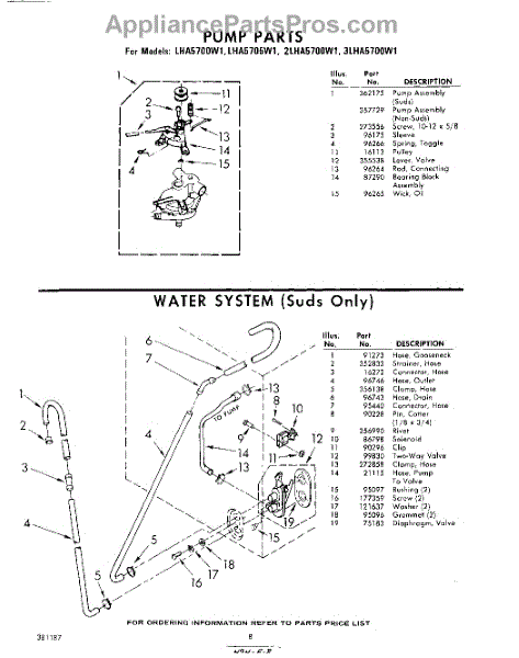 Parts for Whirlpool 3LHA5700W1: 08 - Pump , Water System Parts