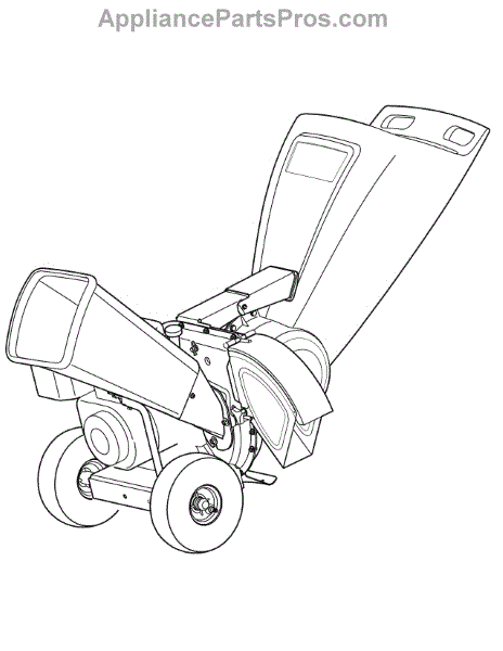 Deflector and chute assembly for chipper shredders. Directs shredded material into collection bag. Replace if cracked, broken, or missing pieces.