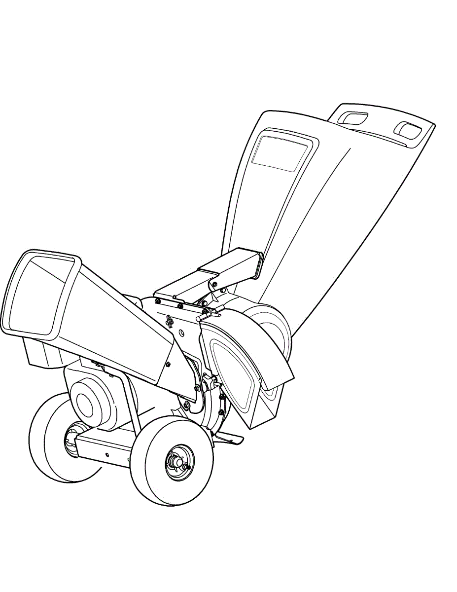 Deflector and chute assembly for chipper shredders. Directs shredded material into collection bag. Replace if cracked, broken, or missing pieces.